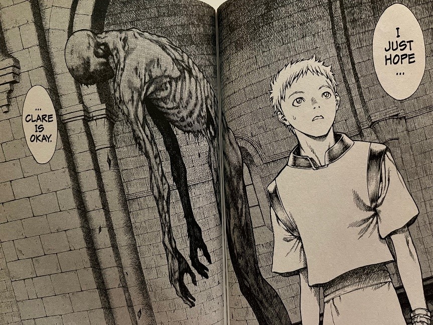 Raki stayed at the inn and was ready to cover for her if anyone came looking while Clare took to the rooftops. She made it to the cathedral and then got all the information she could from Father Vincent. It was looking like someone inside the church was the Yoma. It was also becoming clear that this Yoma was a Voracious Eater – a Yoma that has lived longer than most and eats far more frequently. This is going to be even more dangerous.