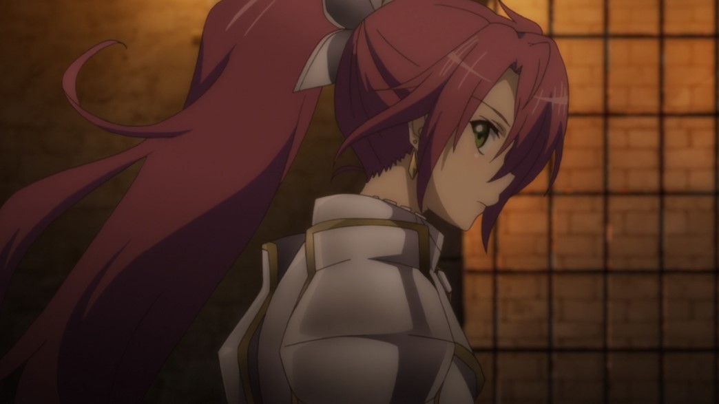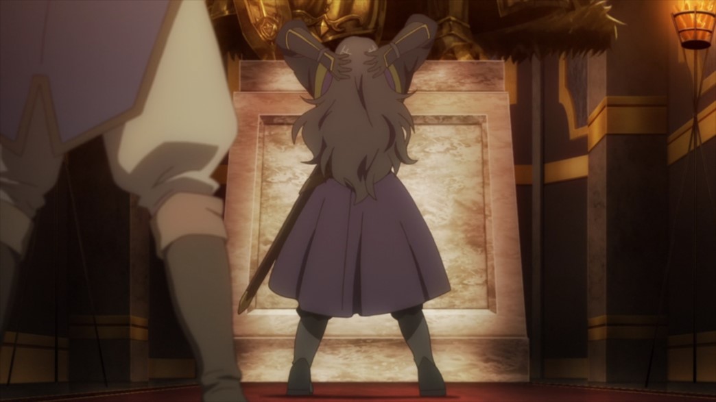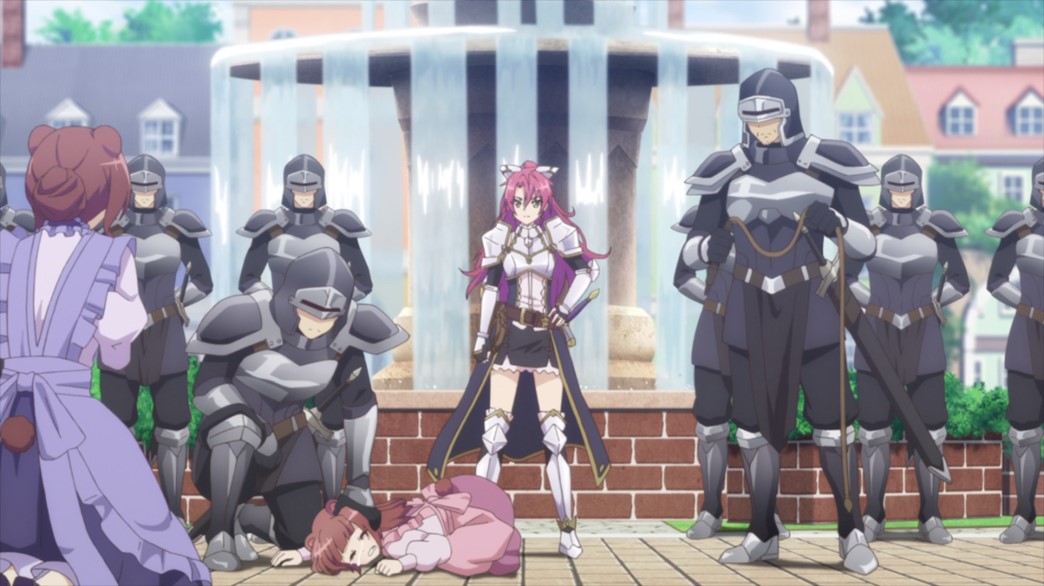 It turns out the captain of the guards, Jeanne du Leblanc is also undercover and trying to overthrow Oslo so she asks Shinobu for help. Meanwhile, Oslo who is admiring a large gold statue of the emperor he commissioned shows how little he thinks of anyone else and then loses it when he learns that the rebellion in Dortmundt hasn’t been quelled. He fires a flaming spear at them, but Tsukasa asks Ringo to shoot it out of the sky. However, their anti-aircraft missiles can only deflect it somewhat and the last one misses!