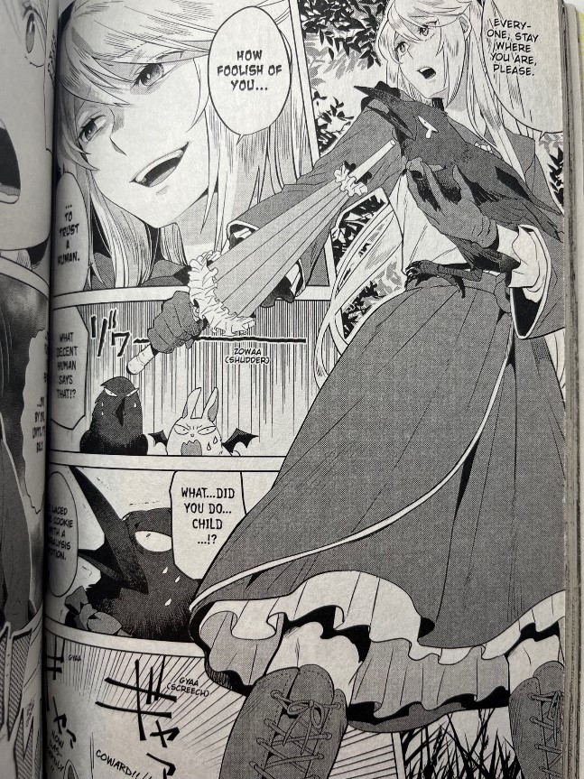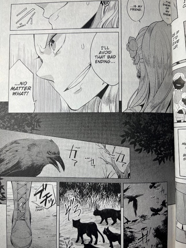 Of course, the Prince undid all that. It was starting to look like he was actually the villain in the story. Well, that was until the very last panel in the book. Get ready for a spoiler… Lilia is the villain. It would appear that she caused the Prince to leave Aileen and she was the one behind Aileen’s downfall. How does this relate to the otome game that Aileen was playing in her past life? Well, her memories are fuzzy and we don’t know if she actually finished the game as she died at a young age. My interest in this story went from “whatever” to “holy crap, I need to know what happens next”. So, give it time. This one is worth the investment, in my opinion.