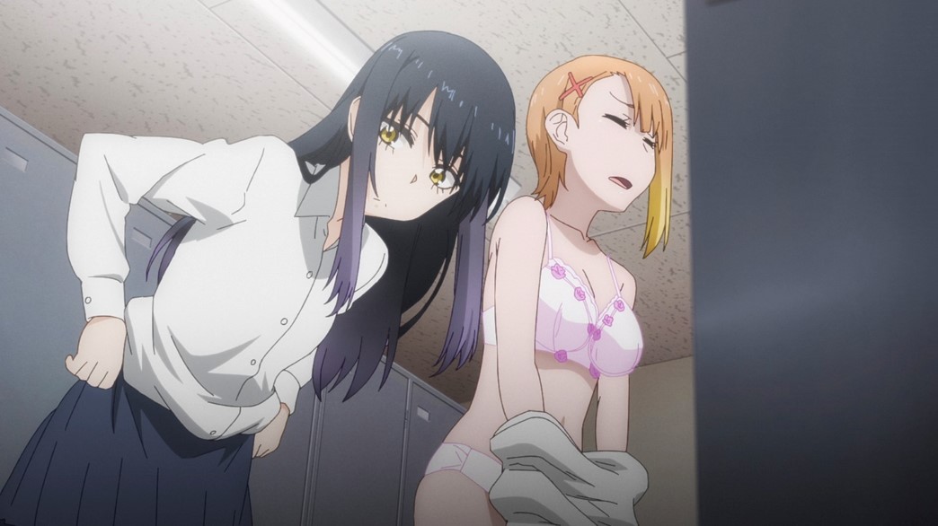 While changing after gym, Hana overhears some girls talking about a scary show in which there was a severed head in a locker. Hana doesn’t like anything scary and gets spooked. She begs Miko to check her locker for her, which she does. It’s not like there will be a severed head in there… Oh, hang on. There is a severed head in her locker. That wouldn’t be a problem if Hana could reach her phone off the top shelf where the head is.
