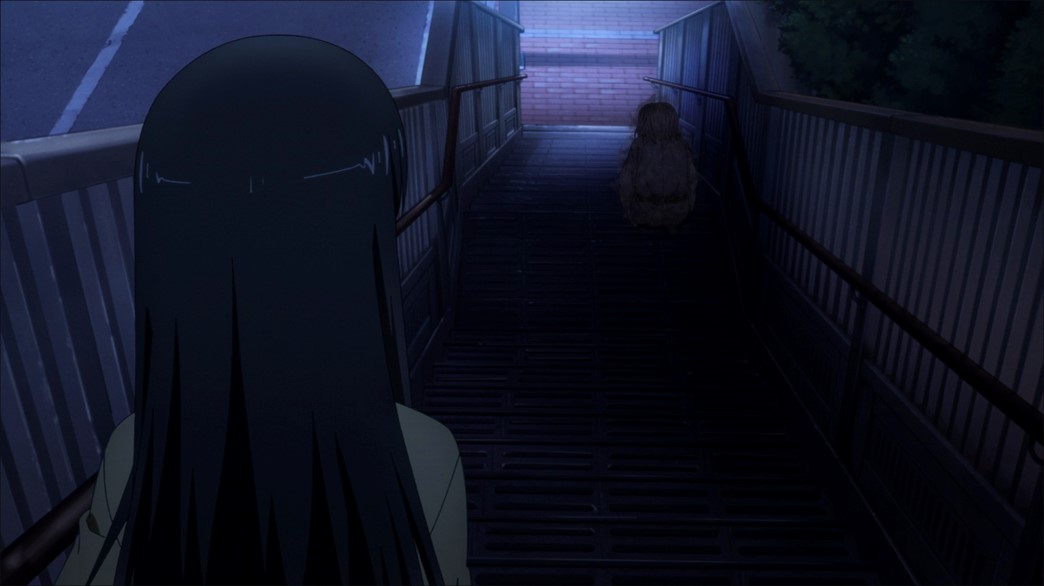Hana makes Miko go shopping on the way home which means Miko is walking home late. She sees a ghost on a set of stairs and tries to walk past, but it grabs her. That’s when Miko realises it’s just a lost old lady so she carries her home. The old lady’s husband recently died and since then, she’s lost her memory. Her daughter wants to thank Miko and runs inside to get something.