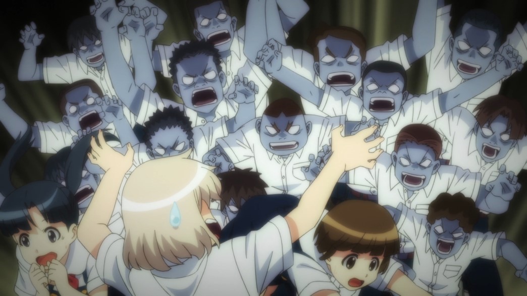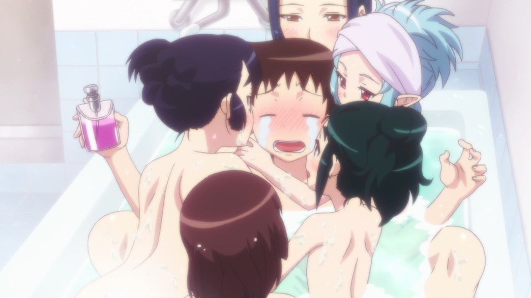 As I said, the first part of the episode was odd and I didn’t really care for it. It certainly didn’t put Kiriha in a good light and felt out of place with the series as a whole. The second part was hilarious and should have been way longer… ie, the entire episode. They really could have done more with the zombie students and made it into a full-on zombie apocalypse episode and still had time for the bath scene at the end. That was an outrageous scene and while we didn’t see all of it, it would have been hentai if we did, we knew exactly what had happened to poor Kazuya… three times…